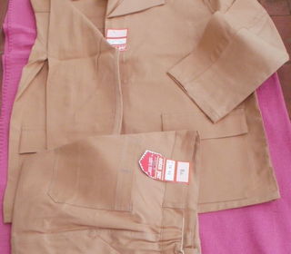 Veste et pantalon de la marque SANFOR, habit de travail. 100% coton. Veste : 3 poches sur le devant dont une avec fermeture éclair (celle du haut). Largeur des épaules : 52