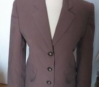 Etat excellent, couleur taupe Largeur des épaules : 40.5 cm Largeur sous les bras : 44 cm 50 % polyester et 50 % viscose Doublure 100 % polyester ref 185 Envoi en colis