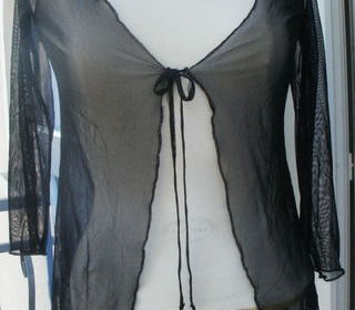 Gilet très léger en voile Taille M de la marque ZARA Couleur noire et rebords dorés 88 % nylon 12 % spandex Largeur au-dessous des bras 41 cm Fabriqué en Espagne Mon