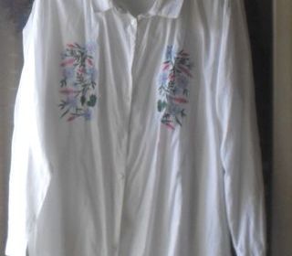 Chemisier Femme Taille 54 Bleu Bonheur Blanc avec fleurs imprimées sur l'avant. Très bon état. D'autres vêtements Femme grandes tailles, chemises, gilets, blousons, parkas, p