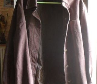 Superbe veste Femme en croûte cuir (porc). Taille 46/48. Doublure polyester. Nettoyage par spécialiste cuir. En excellent état. Possibilité d'obtenir d'autres photographi