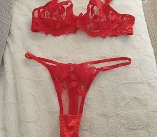 Ensemble soutien gorge (90D) + string réglable sur les côtés, rouge vif trzs bon état