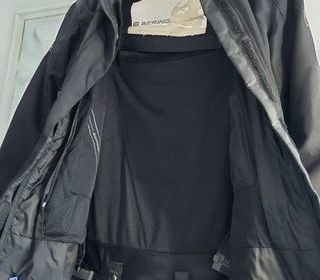 Blouson noir femme en tissu. Bon état. Peu porté. Protections coudes et épaules à changer.