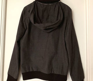 Veste à capuche et à fermeture éclair Couleur gris foncé Taille 52 2 poches plaquées fermeture éclair frontales 1 poche fermeture éclair intérieur sur le côté gauche Col en ma