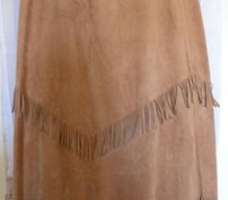 JUPE FEMME TAILLE 38/40 EN EXCELLENT ETAT. SUEDINE BEIGE A FRANGES.