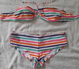 Maillot de bain 2pièces, à rayures multicolores, marque Kiabi ,taille du haut 44 ,taille du bas 46, polyester