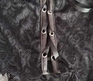 Je vends ce très joli shorty en dentelle noire avec des lacets sur le devant. - Type de produit : shorty - Taille : L - Couleur : Noir - Matière : Dentelle - Caractéristiques : La