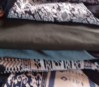lot de 3 pulls pour femme un noir et blanc un verre chenille et un de quel plusieurs couleurs bleu blanc et avec un coup de boule taille 42