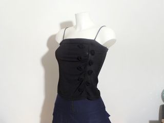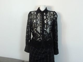 Femme, Chemisier ''CAMAÏEU'' Rayures Marine ? 6 boutons ''Ancre'', Manches longues, bord côte en très bon état. Coton et lycra ; Taille 38/40, mais étiquette coupée. TP.88/90cm