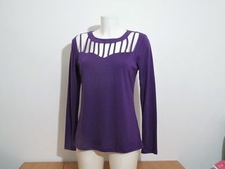 Top / Chemise Violet Plissée à Manches Longues- Taille Unique- Kitana * Top/ chemise en tissu plissé extensible violet avec son petit col, ses manches 3/4, fermé avec de petits bo