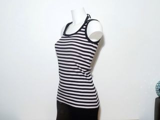 Top/ Tee Shirt à Rayures Bleu Marine et Blanc- Taille 34/36- 3 Suisses * Top/ tee shirt à rayures horizontales bleu marine et blanche avec ses 2 liens bleu marine partant de l'enc