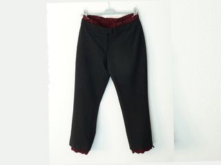 Pantacourt/ Pantalon Gris Anthracite- Taille 1- Patrick Mendes * Pantacourt/ pantalon gris anthracite avec son tissu rouge foncé à la taille et en bas de chaque jambe se referma