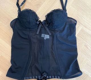 Femme Sexy Corset ''AUBADE'' Taille 85A, T.P.68cm - tiré 72cm. Noir Dentelle et Tulle transparent. Extensible. Fermeture par 15 crochet au dos. Très bon état
