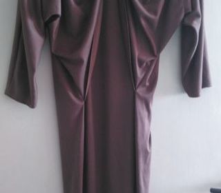 Robe marron, taille 42/44, longueur 115 cm, coupe originale, allonge et amincit la silhouette, plus étroite vers le bas, élégante, matière souple et douce, se lave, ne se froisse p
