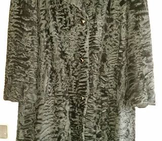 Manteau en fourrure Astrakan Couleur noir Boutons fantaisie noir et or ( 3 ) État excellent Col et revers Taille 46 ?