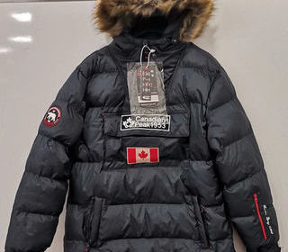 Neuve avec étiquette. Taille grand. Composition extérieure : 100% polyamide. Composition intérieure : 100% polyester. Capuche avec fausse fourrure amovible. Longueur : 75 cm L