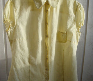 blouse jaune , courtes manches , taille 38 , marque Promod , très bon état , 98 % coton 2 % fibre métal