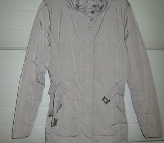 Doudoune de couleur beige, sans capuche, très bon état, distribué par la marque SYM, taille 44, 100% polyester, au petit prix de 8 euros. Pas d'envoi, essayage possible sans engage
