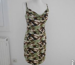 TRES ORIGINALE robe été , etat comme neuf . Décolleté petit drapé bénitier , base devant legèrement en pointe . Taille M , 38/40 . Matière fluide , vite lavée, vite sèche MORGAN