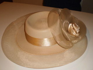 Chapeau de mariage, colorie beige. Porté juste à la mairie pour le mariage de ma fille.