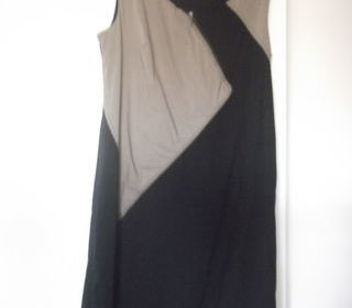 porté mais encore en bon état . couleur noire et bandes beige devant , uni noir derriére . bas froncé ( voir 5éme photo) , plissé sur haut de bretelle droite .