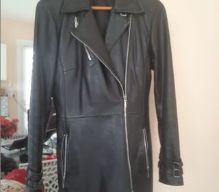 Veste hiver noire en peau correspond a du 40 Veste exellent etat avec broderies. Marque Rene Derhy.