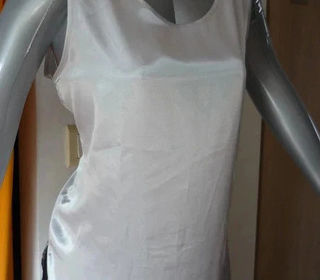 Débardeur Satin gris Arrondi et ouvert de chaque côté Taille : 46 Jean Taille : 46 Cadeaux ceinture cuir collier fils et rond os