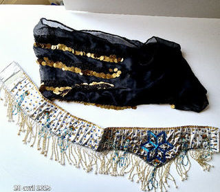 Ensemble de danse orientale, Ceinture de danse du ventre fait main et son écharpe musicale La ceinture se ferme avec du velcro, 82 cm de long l'étoile fait 13