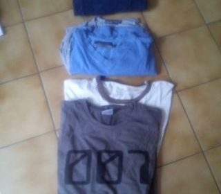 vend lot vêtements masculin:5 articles + 1 tee-short publicité 1 pull marque phildar Taille M 2 tee-short colle V manches courtes Taille S 1 tee-short Manches C et 1 Manches L (mai