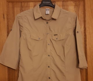 Chemise beige pour femme marque Quechua Taille 40 // état neuf // manches 3/4 (possibilité de remonter les manches avec pattes + boutons ) 95% polyamide 5% polyester // longueur 60