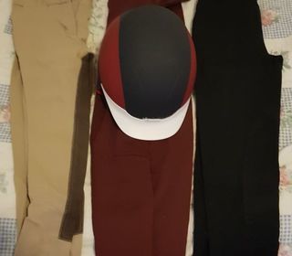 3 pantalons d'équitation 5 euros chacun et une bombe d'équitation 10 euros