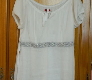 BLOUSE FASHION + T 48 EN TRES BON ETAT // BLANC CASSE // POLYESTER // TRES JOLI BLOUSE DOUBLEE MANCHES BALLONS // COL ROND AVEC GALON // GALON A NOUER DANS LE DOS // FANTAISIE AGEN