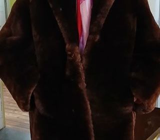 Manteau 3/4 en mouton doré, années 50, très bon état Très belle qualité, fait par un fourreur fabrication artisanale, forme trapèze Longueur 90 cm Longueur des manches: 55 cm,