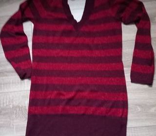 Pull fantaisie rouge brillant taille XL en bon état // matière acrilyque polyester fibre métallique // Dimension longueur milieu dos 67 cm largeur poitrine à pl