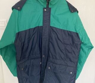 Veste de travail hiver verte et marine M Veste imperméable et chaude (doublée) pour travailler dehors Capuche escamotable dans le col Fermeture éclair + 3 boutons pression Sur
