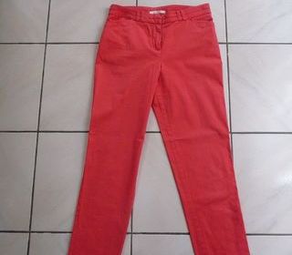 Joli pantalon couleur corail, taille 34, marque CAMAÏEU, 2 poches plates devant, double passants pour ceinture, 2 fausses poches plates au dos. Coton et élasthanne, lavage machine