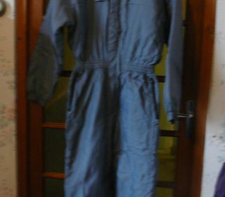 Vends une combinaison ski homme , taille L , gris clair et bas de jambes noir avec sigle energy sur coté gauche ; 4 poches fermées par glissières , taille ressérée par élastique .