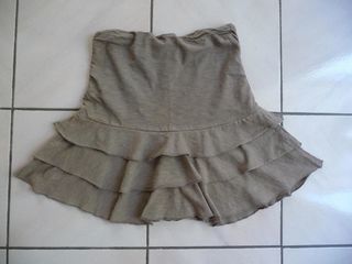 Jupe à volants, marque JENNYFER, taille M, marron glacé chiné, 3 volants, 100 % coton, lavage 30°, taille élastiquée. Tour de taille : 66 cm environ, longueur : 45 cm environ. P