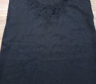 HAUT NOIR FANTAISIE T 42/44 SANS MANCHES//EN TRES BON ETAT // COL ROND // TISSUS FANTAISIE + EFFET DENTELLE AU COL // SYNTHETIQUE longueur milieu dos 59 cm largeur