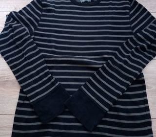 TEE SHIRT MANCHES LONGUES marque JULES T S // EN TRÈS BON ÉTAT // COULEUR RAYE GRIS ET NOIR // COL ROND //COTON ÉLASTHANNE DIMENSION // milieu dos 64 cm