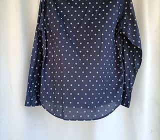 Sublimez votre style avec cette chemise H&M Regular Fit jamais portée, en taille M ! Son motif à pois blanc sur fond bleu marine apporte une touche d'originalité, idéale aussi bien