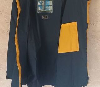 PARKA IMPERMEABLE WATERPROOF BLEU MARINE ET JAUNE AVEC CAPUCHE DANS LE COL MARQUE TRIBORD TAILLE L FERMETURE DOUBLE PAR ZIP + SCRATCH 1 POCHE A L'INTERIEUR SIMPLE LAVAGE 30%