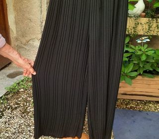 TRES BELLE JUPE-CULOTTE TRES ELEGANTE NOIRE EXTENSIBLE ET A TAILLE UNIQUE- Fabrication italienne Long. 1,08m ? Larg.73 CM (x2) -Taille élastique : 58 m x 2 Matière : 95% polyest