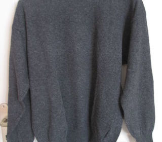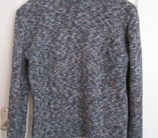 Pull de couleur bleu/gris moucheté, tricoté maison en laine. Correspond à une taille L. Très bon état, peu porté. Longueur au dos 58 cm, largeur sous les bras 49 cm, longueur app