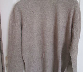 Pull fin en laine acheté pour femme mais peut être mixte. Noté taille 3/L. 80% laine, 20% polyamide. Bon état mais maille un peu peluchée. Longueur au dos 68 cm, largeur sous le