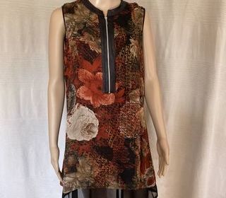 Tunique DPM, Du Plaisir à la Mode, taille 3 Jamais portée, déco automnale. Deux épaisseurs, un voile noir, un voile imprimé aux couleurs de l'automne. Petit prix car une couture