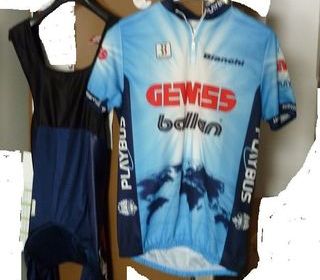 VENDS ENSEMBLE CYCLISTE. COMBINAISON + T.SHIRT XL A FERMETURE ECLAIR MARQUE: "GEWISS BULLAN". NEUF. JAMAIS PORTE. EN FIBRE ELASTIQUE.+ CASQUE, GANTS, LUNETTES. PRIX: 90 EUROS LE L