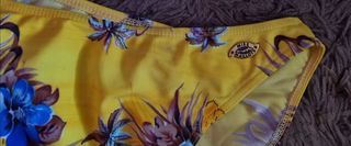 Je vends ce maillot de bain 2 pièces jaune et bleu de taille 44. - Type de produit : Maillot de bain 2 pièces - Taille : 44 - XXL - Couleur : Jaune / Bleu - Caractéristiques : Moti