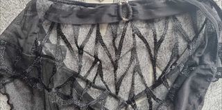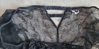Je vends ce très joli shorty en dentelle noire avec des lacets sur le devant. - Type de produit : shorty - Taille : L - Couleur : Noir - Matière : Dentelle - Caractéristiques : La