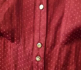 Chemisier marron clair avec surpiqûres noires ? T 38/40 - manches avec poignets fermés par un bouton - 100% polyester ? Marque MONA
